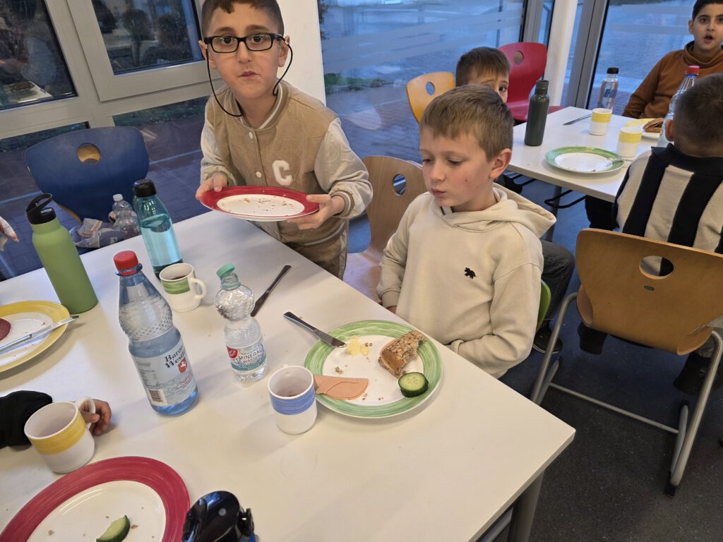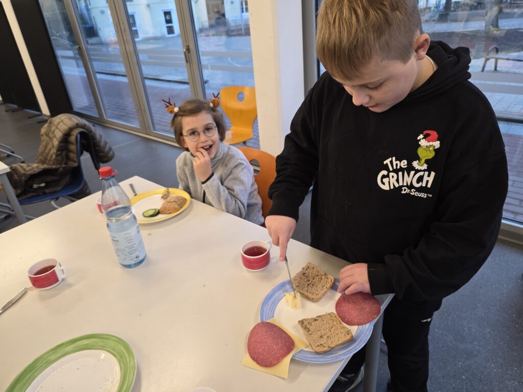 Am Dienstag, den 02.12.2025 starteten wir mit den Kindern und Lehrkräften aus Jahrgang 1. Dabei wurden wir tatkräftig von sieben fleißigen Müttern unterstützt. Vielen Dank an alle für das gelungene Frühstück!!!