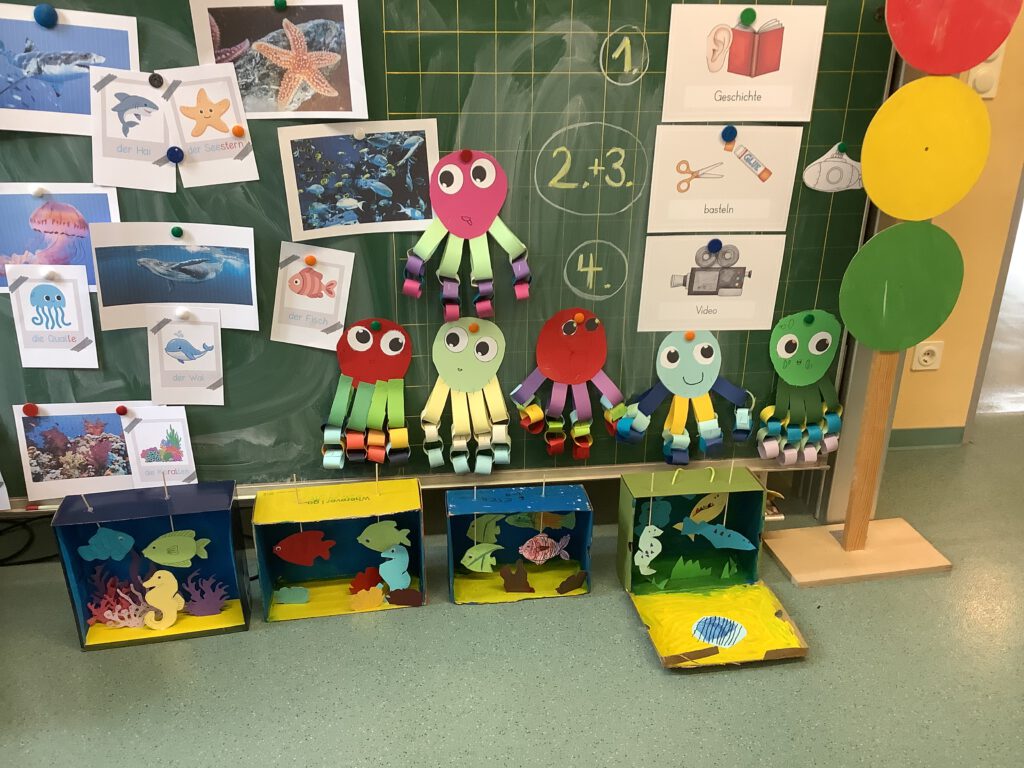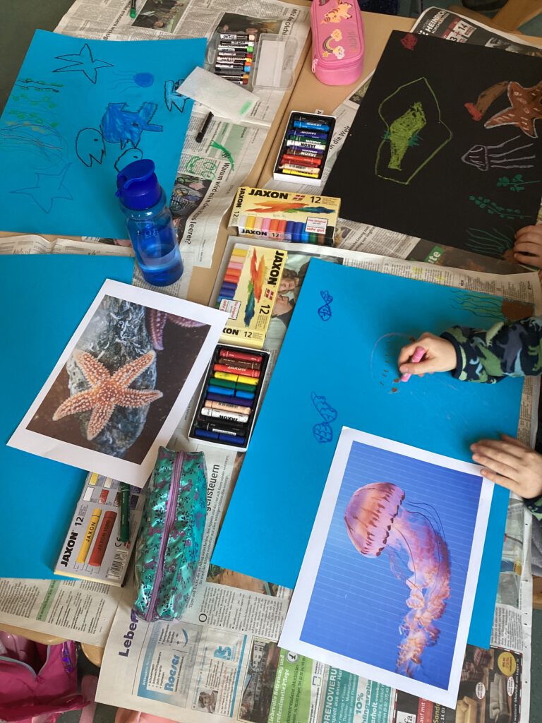 Dieses Jahr hat sich nach ersten Vorschlägen durch die Lehrerkonferenz unser Kinderparlament eine Projektwoche zum Thema „Unterwasser“ gewünscht. Diese Woche arbeiten die Kinder in jahrgangsübergreifenden kleineren Gruppen zum Thema: