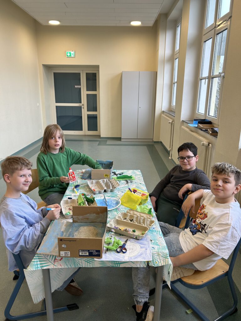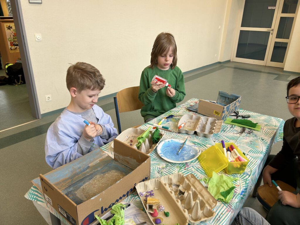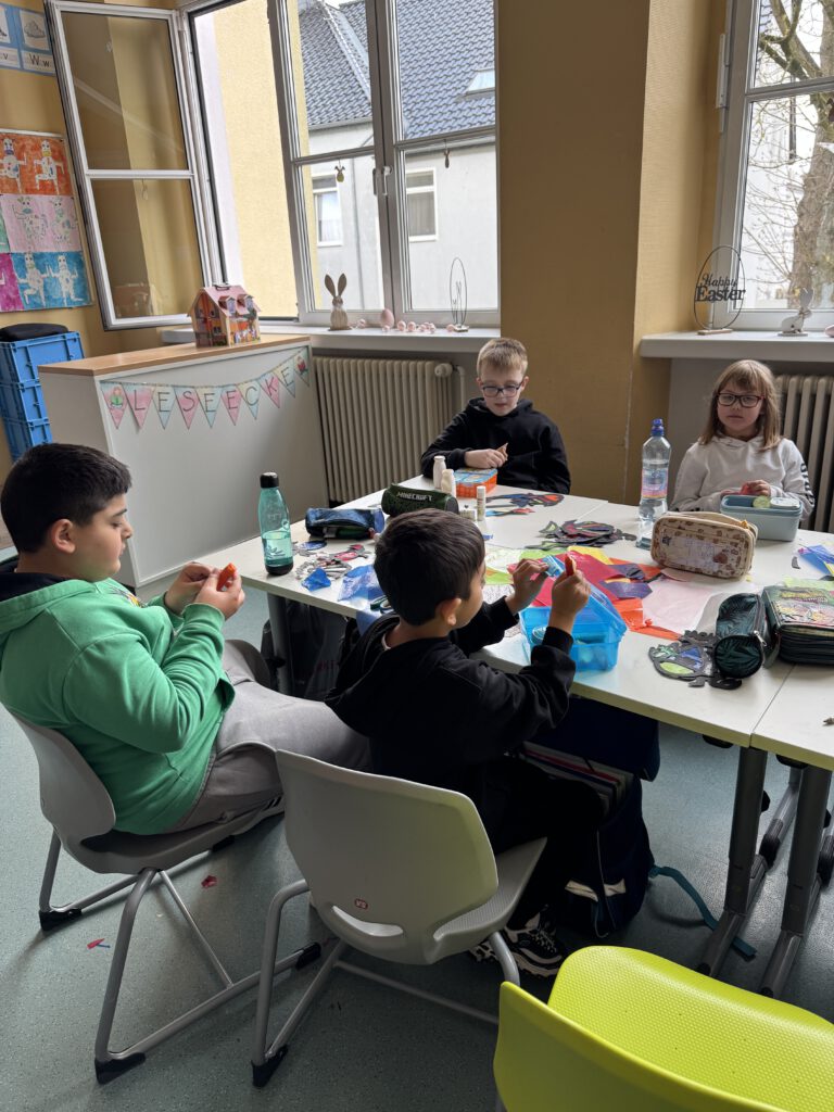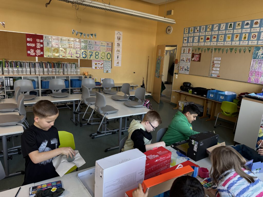 Eine Kleingruppe aus Jahrgang 4 hat heute Eier gefärbt und gestaltet. Die Kinder hatten viel Freude und tolle Ergebnisse!