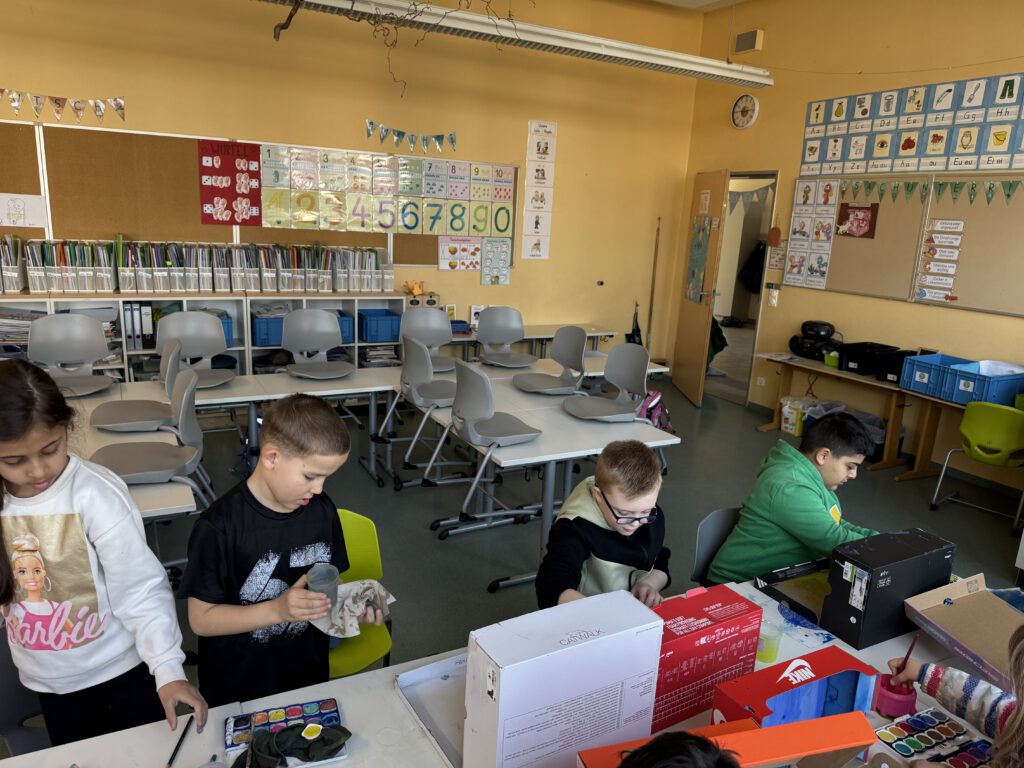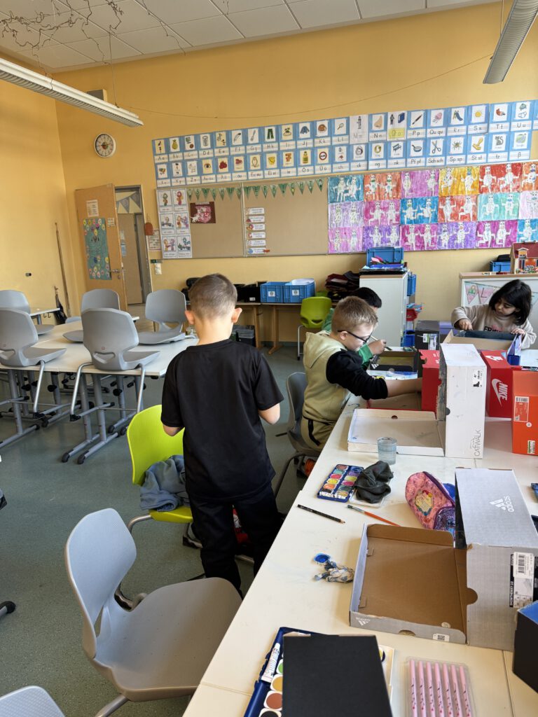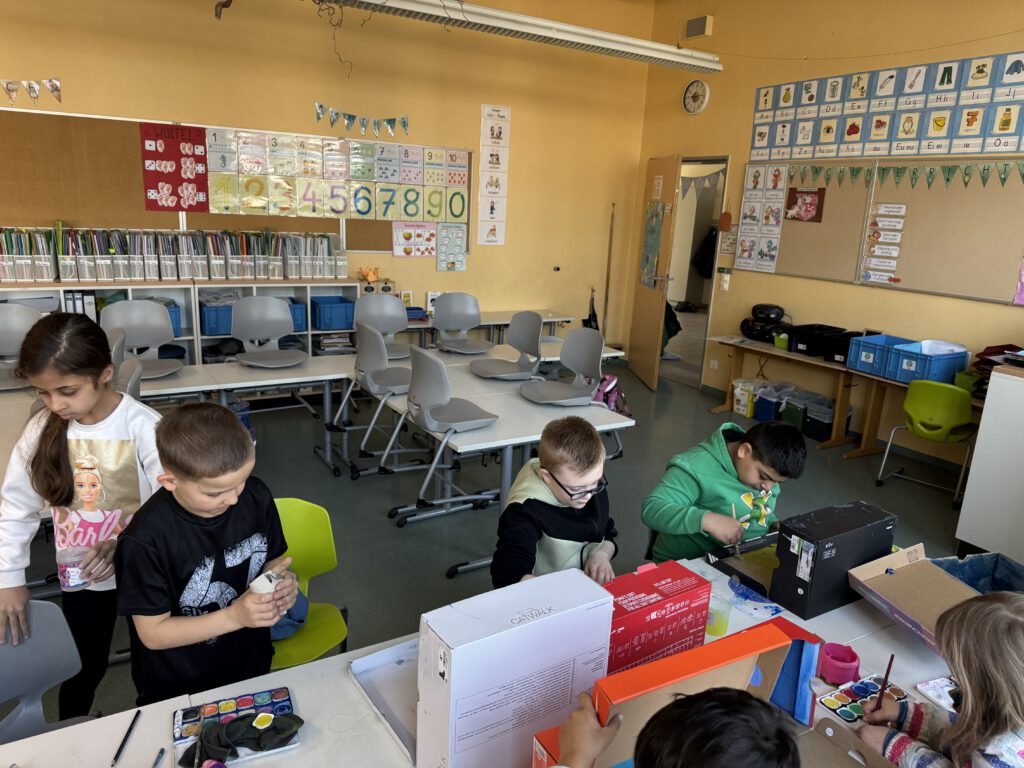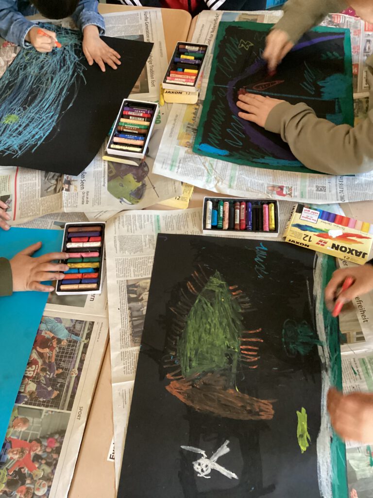 Eine Kleingruppe aus Jahrgang 4 hat heute Eier gefärbt und gestaltet. Die Kinder hatten viel Freude und tolle Ergebnisse!