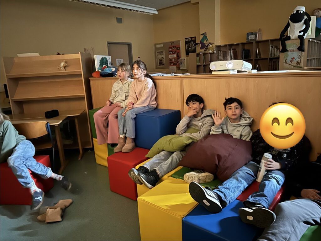 Heute (04.02.2026) kam Herr Sassenroth aus Bielefeld zu Besuch in unsere schöne Bücherei. Dort erwarteten ihn viele gespannte Augenpaare von Kindern aus der Klasse 1a und danach aus der Klasse 1b sowie deren Lehrkräfte. Nach einer Vorstellung und Hinführung zum Thema Geschichten, erhielten die Kinder eine tolle Lesung vom Autor persönlich. Begleitet wurde er von seinen beiden Hauptdarstellern EUMEL und EMI. Die Geschichte „EUMEL und EMI – TWINKY der besondere Stern“ behandelt das Thema „Kindertraum“ und unterstützt diese Aktion dadurch ebenfalls.