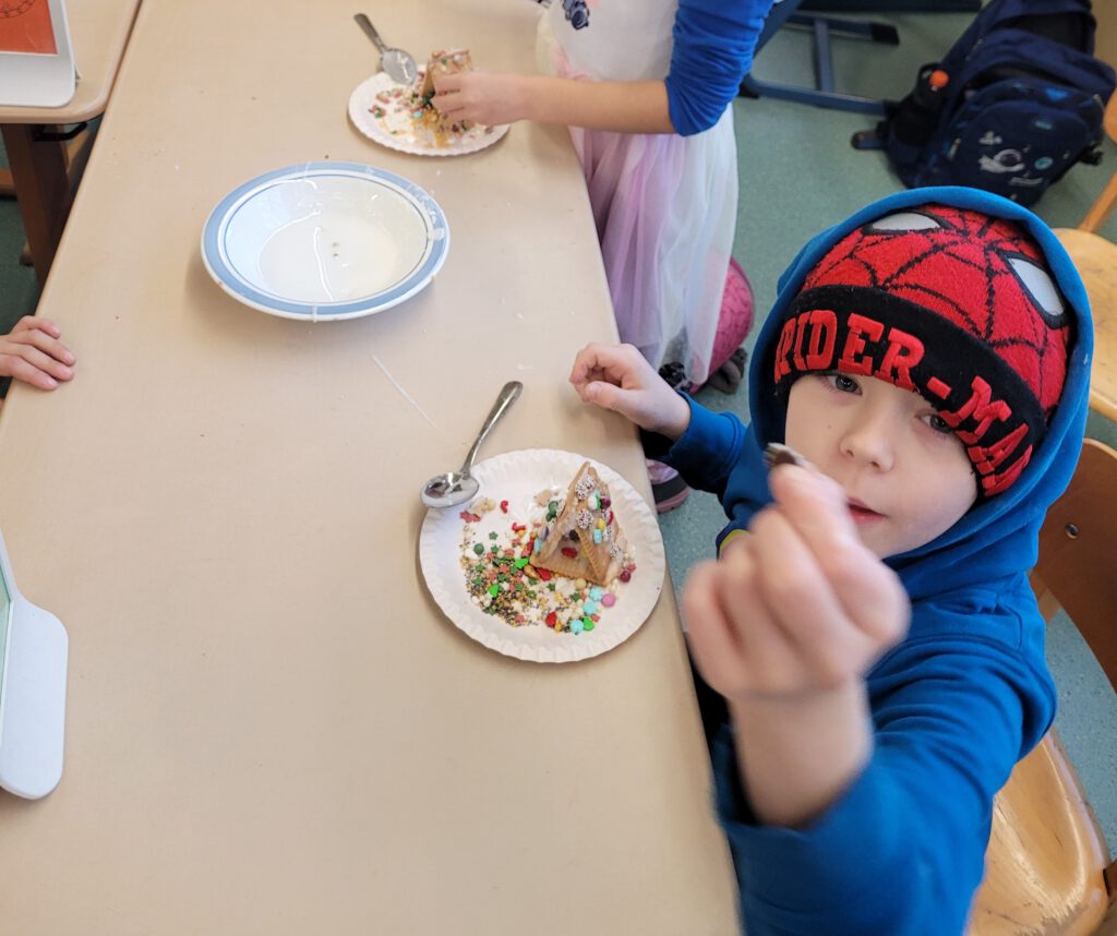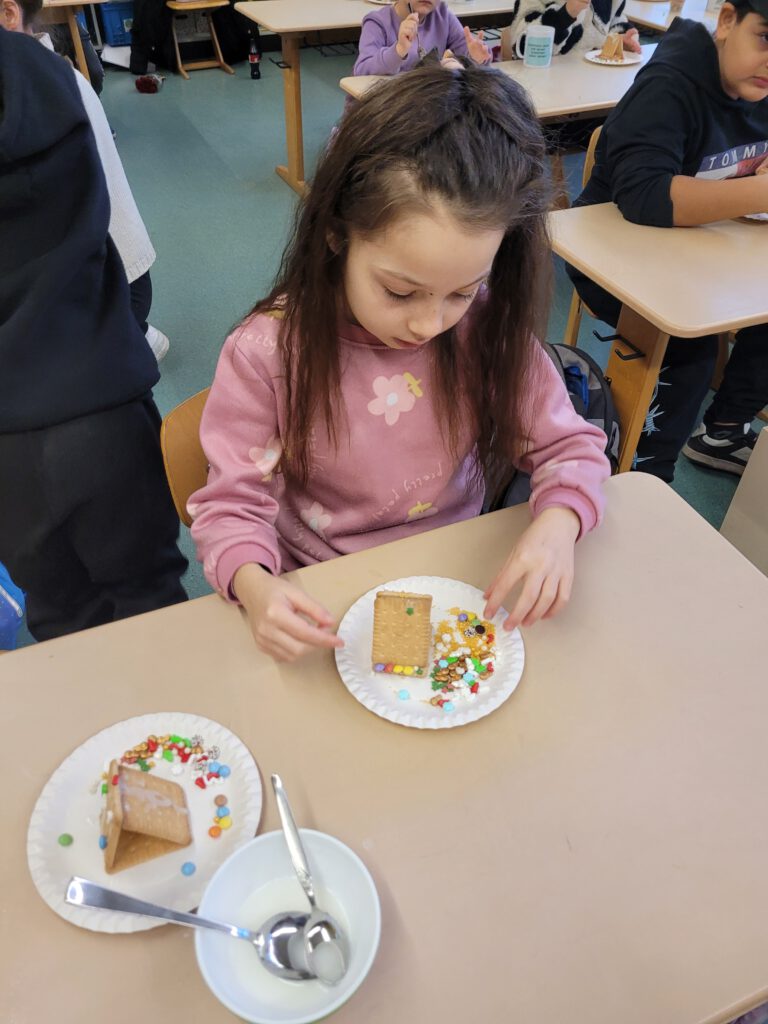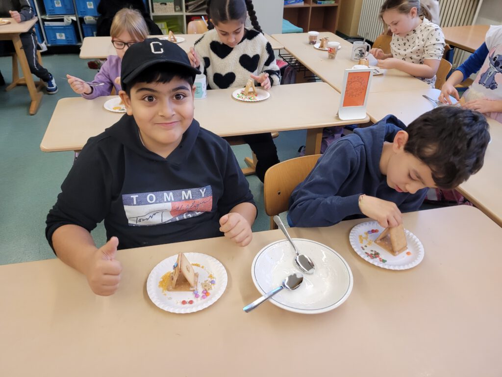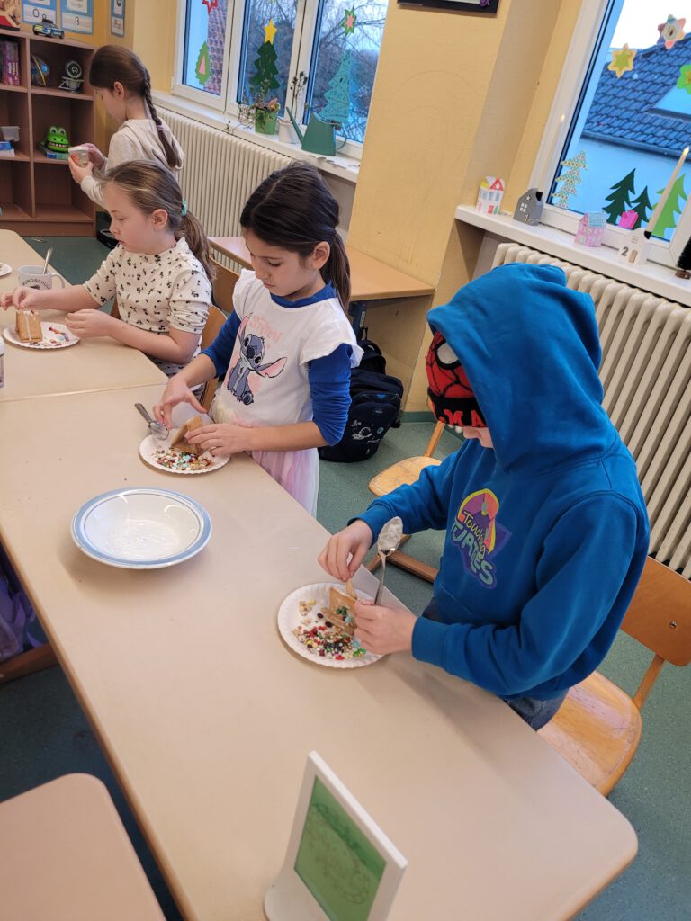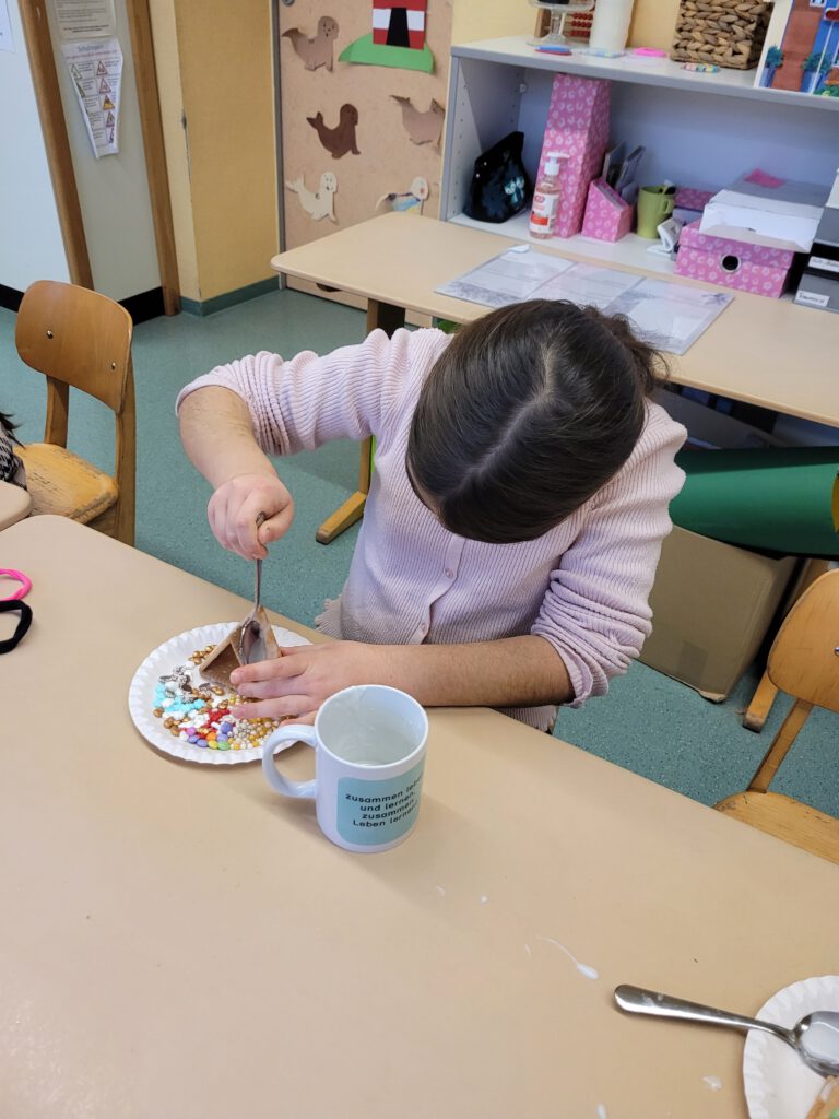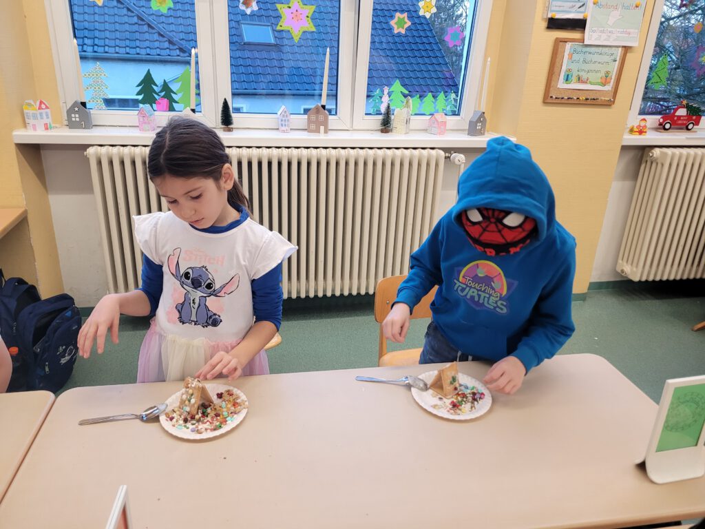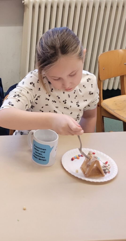 Heute haben die Kinder der 2c ihre eigenen kleinen Knusperhäuschen hergestellt. Dabei hat jedes Kind sein Haus nach seinen eigenen Wünschen und Vorlieben hergestellt. Alle hatten viel Spaß. Die Ergebnisse sind sehr schön (und lecker) geworden!