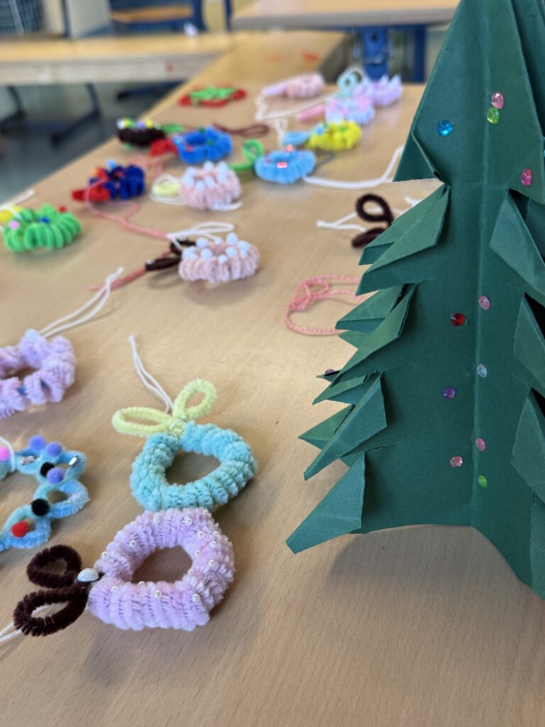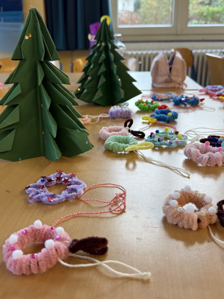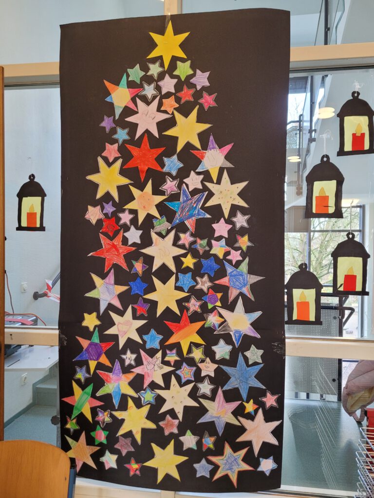 Am Dienstag konnten unsere Kinder innerhalb ihres Jahrgangs an diversen Stationen schöne weihnachtliche Dekorationen herstellen. Es wurde gemalt, geklebt, geschneidet, genäht etc. Auch unser schöner Weihnachtsbaum wurde am Ende des Tages mit dem gebastelten Schmuck dekoriert. Nun erstrahlt unser Schulgebäude im weihnachtlichen Glanz und trägt zur vorweihnachtlichen Stimmung bei.
