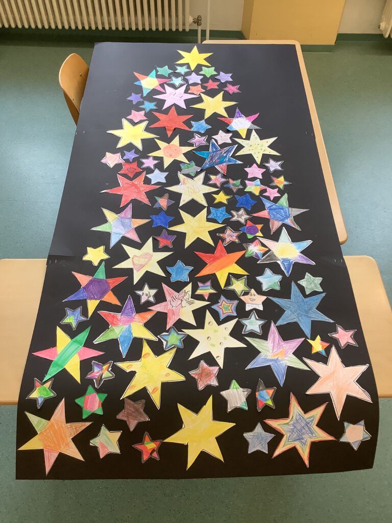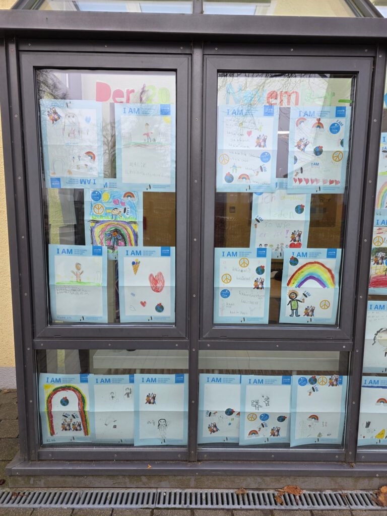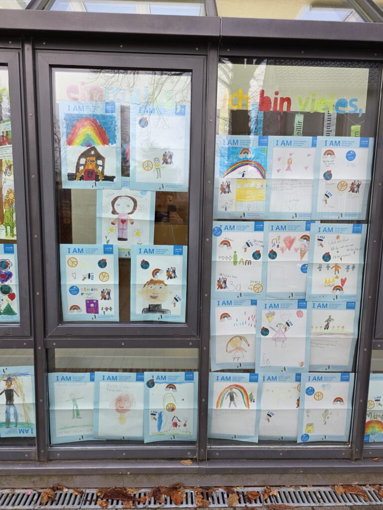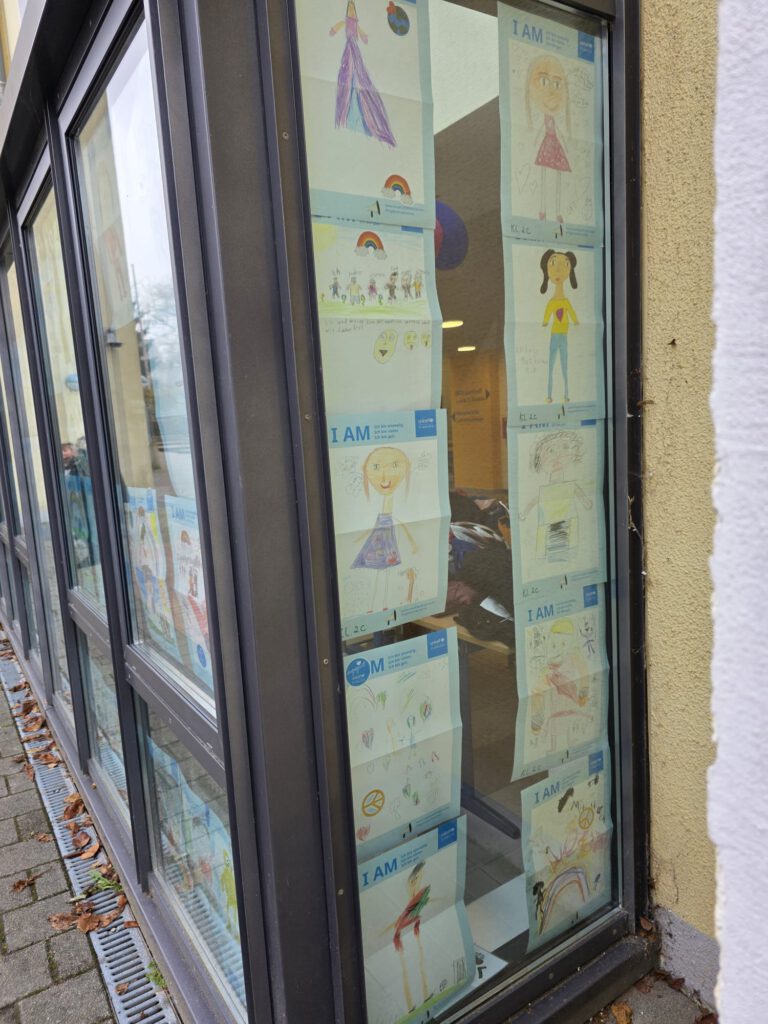 Am 20.11.2025 haben wir uns wieder am internationalen Tag der Kinderrechte beteiligt. Alle Kinder erhielten ein Plakat, auf dem sie schreiben, malen, zeichnen, basteln … durften, wer sie sind und was sie ausmacht. Anschließend wurden die Kunstwerke bei uns im gut sichtbaren Außenfensterbereich ausgestellt. Die Poster und Sticker wurden von UNICEF zur Verfügung gestellt. Danke dafür! Hier ein kleiner Ausschnitt der entstandenen Werke. Am besten sind die Werke natürlich vor Ort zu bestaunen 🙂